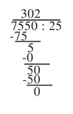sprawdzenie: 302 ꞏ 25 = 7550.