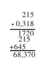 Pomnóż liczbę dziesiętną i naturalną sposobem pisemnym, czyli zapisz liczby tak jak w przypadku mnożenia pisemnego. Przecinek w wyniku zapisz, w tym samym miejscu, w jakim znajduje się w liczbie dziesiętnej.