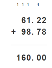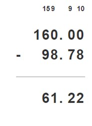 160 – 98,78 = 61,22