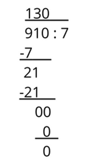 Podczas dzielenia można skreślić taką samą ilość zer w dzielnej i dzielniku, czyli oblicz działanie: 910 : 7