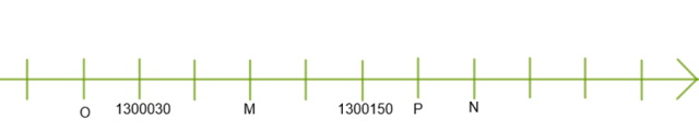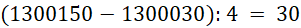 Od 1300030 do 1300150 są cztery kresek, zatem jedna ma wartość