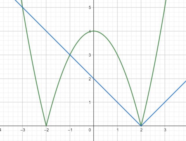 By rozwiązać nierówność metodą graficzną, naszkicuj wykresy funkcji odpowiadających dwóm stroną nierówności. Rozwiązaniami są argumenty, dla których wykres funkcji y = |x2 – 4| znajduje się wykresem funkcji y = |x – 2|.