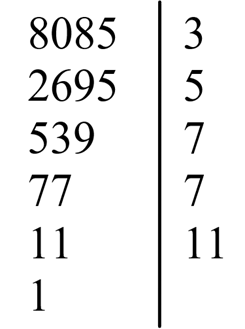 Podane liczby: 5100, 8085 rozłóż na czynniki pierwsze i napisz jej najmniejszy oraz największy dzielnik różny niż ta liczba.