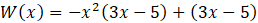 Aby rozłożyć wielomian na czynniki, z kolejnych par wyrazów wyłącz przed nawias wspólny czynnik. Następnie z całego wielomianu wyłącz czynnik 3x – 5. Na koniec zastosuj wzór skróconego mnożenia na różnicę kwadratów.