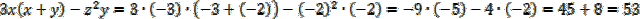 Podstaw x = -3, y = -2 oraz z = -2 do wyrażenia: