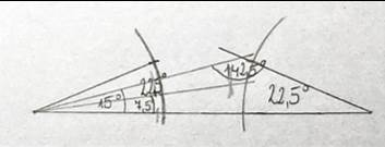 i zaznacz taką długość wbijając cyrkiel w miejsce przecięcia łuku z drugim ramieniem kąta o mierze 15