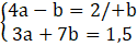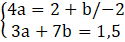 do drugiego równania i obliczamy a. Po obliczeniu a podstawiamy 0,5 do pierwszego równania na liczbę b.