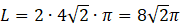 Najpierw odczytujemy wartość „r” z równania. Następnie korzystamy ze wzoru na długość okręgu