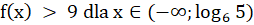 Obliczasz argument, dla którego funkcja przyjmuje wartość 9, przyrównując ją do tej wartości, a następnie określasz, dla jakich argumentów przyjmuje wartości mniejsze od 9.