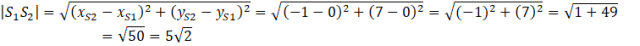 Odległość między tymi środkami obliczysz ze wzoru na długość odcinka łączącego dwa punkty: