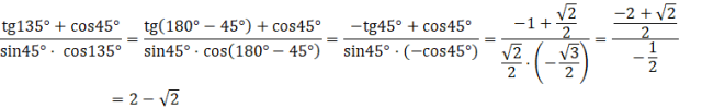 Korzystamy ze wzoru na wartości funkcji trygonometrycznych dla kątów rozwartych, aby przekształcić je na liczby wymierne.