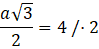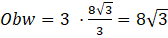 , gdzie a jest długością boku trójkąta. Po przekształceniu tego równania wyznaczono długość boku trójkąta. Aby obliczyć obwód, pomnożono długość boku trójkąta przez 3.