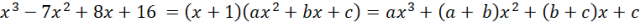 rozkładasz, zauważając, że -1 jest jego miejscem zerowym, a następnieporównaj współczynniki przy potęgach, aby rozłożyć całość.