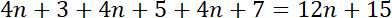 Zapisz sumę trzech kolejnych liczb nieparzystych, z których pierwszą jest