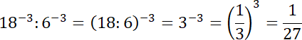 oraz tego, że ujemny wykładnik potęgi odwraca liczbę potęgowaną: