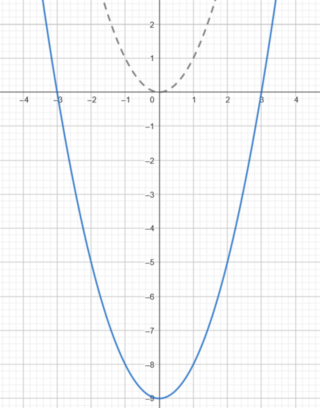 musisz każdy punkt znajdujący się na wykresie narysowanej funkcji przesunąć o 9 jednostek w dół.