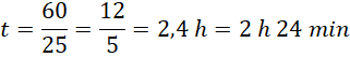 Ustal, ile czasu zajmie rowerzyście pokonanie całego dystansu mającego długość 60 km, jeśli będzie jechał z prędkością 25 km/h.