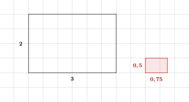Aby skala podobieństwa drugiego czworokąta do pierwszego wynosiła , to jego wymiary muszą być cztery razy mniejsze od wymiarów wyjściowej figury.