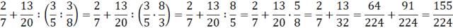 Pamiętaj, pierwszeństwo ma działanie w nawiasie, po nim wykonaj dzielenie przed nawiasem, a na końcu – dodawanie. Znak dzielenia zastąp mnożeniem i odwróć drugi ułamek, skracaj czynniki, gdy to możliwe. Na końcu sprowadź ułamki do wspólnego mianownika (najmniejszą wspólną wielokrotnością liczb z mianowników jest ich iloczyn) i dodaj do siebie w ten sposób otrzymane liczniki.