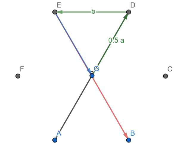 Zauważ, że wektor EB jest dwukrotnością wektora EG. Wektor EG z kolei jest sumą wektorów GD (