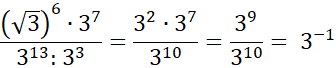 Wykonaj kolejne obliczenia. W mianowniku odejmij wykładniki i przepisz podstawy. W liczniku najpierw podziel wykładnik jednego z czynników przez stopień pierwiastka, następnie przepisz podstawę, a wykładniki dodaj. Na koniec podziel licznik przez mianownik, przepisując podstawę i odejmując od wykładnika licznika wykładnik mianownika.