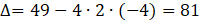 Jeżeli parabola znajduje się nad osią
