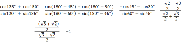 Korzystamy ze wzoru na wartości funkcji trygonometrycznych dla kątów rozwartych, aby przekształcić je na liczby wymierne.