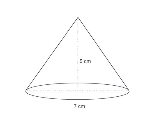 Naszkicuj bryłę powstałą przez obrót trójkąta równoramiennego wokół prostej zawierającej wysokość. Długość podstawy trójkąta to 7 cm, a wysokości 5 cm.