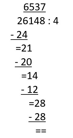 W tym zadaniu musisz obliczyć pisemnie podane działanie: iloraz liczb dwadzieścia sześć tysięcy sto czterdzieści osiem i cztery.