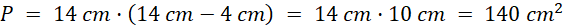 Policz pole prostokąta, w którym: jeden bok ma 14 cm, a drugi jest o 4 cm krótszy.
