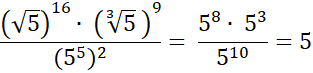 Wykonaj kolejne obliczenia, w mianowniku, podnosząc do potęgi liczbę podniesioną do potęgi, podstawę przepisujesz, a potęgi mnożysz. W liczniku najpierw podziel wykładniki czynników przez stopienie pierwiastków, następnie przepisz podstawę, a wykładniki dodaj. Na koniec podziel licznik przez mianownik, przepisując podstawę i odejmując od wykładnika licznika wykładnik mianownika.