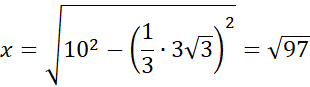 Następnie korzystając z twierdzenia Pitagorasa, oblicz długość y będącą przyprostokątną trójkąta prostokątnego o drugiej przyprostokątnej równej
