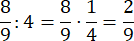 W tym zadaniu musisz podzielić podaną wartość przez 4 – z uwagi na dzielenie ułamka, trzeba zapisać dzielenie przez 4 w postaci iloczynu jego odwrotności. Pozwoli to na skrócenie podobnych wyrażeń i uzyskanie wyniku.