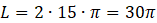 Najpierw odczytujemy wartość „r” z równania. Następnie korzystamy ze wzoru na długość okręgu