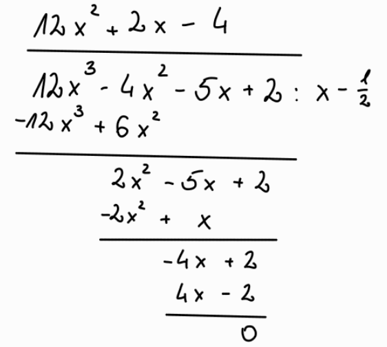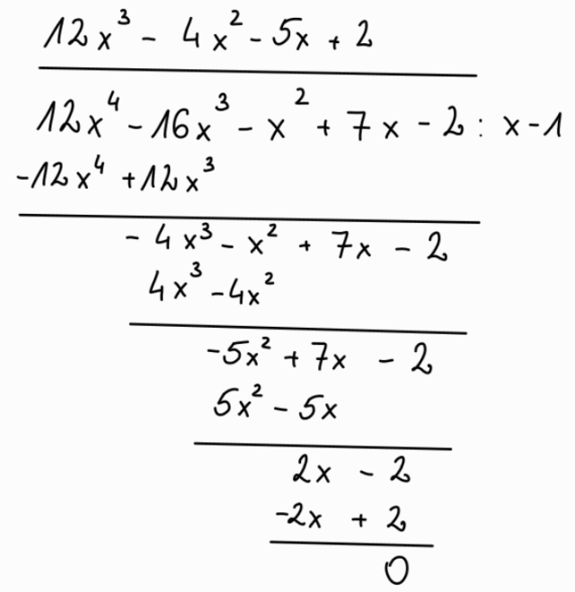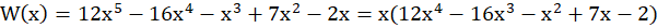 W danym wielomianie wyłączasz x przed nawias, co jest równoznaczne ze znalezieniem pierwszego pierwiastka równego 0. Następnie zgodnie z twierdzeniami o pierwiastkach całkowitych i wymiernych wielomianu sprawdzasz, które liczby są jego pierwiastkami. Po ustaleniu danej liczby wykonujesz dzielenie pisemne wielomianu. Wynikiem dzielenia jest wielomian stopnia trzeciego, którego jeden z pierwiastków wyznaczasz ponownie korzystając z powyższych twierdzeń. Po wyznaczeniu kolejne pierwiastka ponownie wykonujesz dzielenie pisemne. Wynikiem tego dzielenia jest trójmian kwadratowy, który sprowadzasz do najprostszej postaci korzystając z delty.