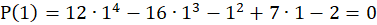 Zatem liczba 1 jest pierwiastkiem wielomianu.
