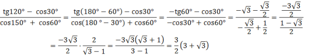 Korzystamy ze wzoru na wartości funkcji trygonometrycznych dla kątów rozwartych, aby przekształcić je na liczby wymierne.