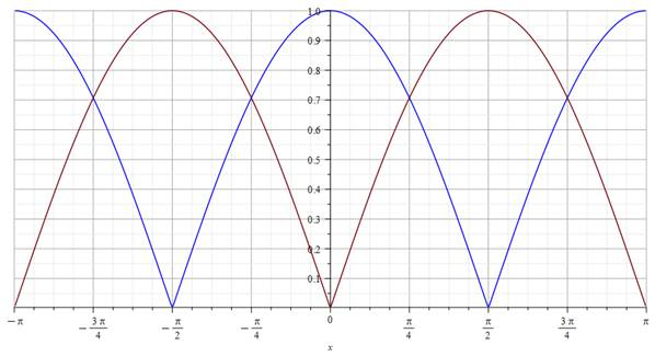 Stąd na wykresie kolor niebieski oznacza funkcję