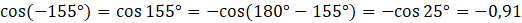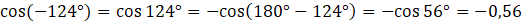Dane są kąty: -124°, -155°, wyznacz wartości ich cosinusów.
