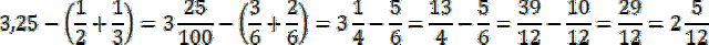 Pamiętaj o kolejności wykonywania działań: najpierw nawiasy, potem mnożenie/dzielenie, a na końcu dodawanie/odejmowanie. Ułamki dziesiętne zamień na zwykłe, doprowadź je do wspólnego mianownika i oblicz ich sumę, a następnie różnicę. Uzyskany wynik przedstaw w postaci liczby mieszanej.