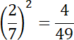 Pamiętaj, podnieść do potęgi 2 znaczy pomnożyć dwie takie same liczby przez siebie. Wpisz do licznika liczbę, która po podniesieniu do kwadratu daje 4, a do mianownika liczbę, która podniesiona do potęgi drugiej da 49.
