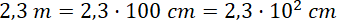 W tym zadaniu musisz zamienić 2,3 metra na centymetry i wynik zapisać w notacji wykładniczej.
