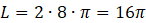 Najpierw odczytujemy wartość „r” z równania. Następnie korzystamy ze wzoru na długość okręgu