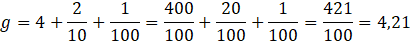 Przedstaw 4 jako czterysta setnych, dwie dziesiąte jako dwadzieścia setnych, a następnie dodaj ułamki i przedstaw wynik w postaci ułamka dziesiętnego.