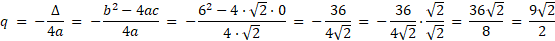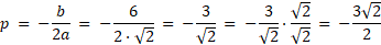 Współrzędne wierzchołka p i q obliczamy za pomocą wzorów