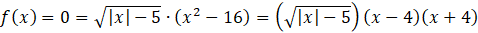 4 i -4 nie należą do dziedziny, zatem miejsca zerowe to 5 i -5.