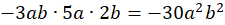 Zapisz jednomian w postaci uporządkowanej: najpierw znak, potem czynnik liczbowy, a następnie czynniki literowe w kolejności alfabetycznej.