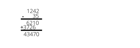 W pierwszej kolejności musisz obliczyć 1242 ∙ 5. Następnie 1242 ∙ 3, ponieważ mnożysz dziesiątki drugiej liczby, wynik zaczynasz zapisywać w rzędzie dziesiątek. Na koniec dodajesz do siebie odpowiednio składniki i otrzymujesz wynik.