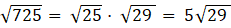 W tym zadaniu musisz wyłączyć czynnik przed pierwiastek kwadratowy z 725.