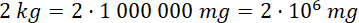 1 kg = 1000 g = 1 000 000 mg